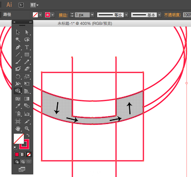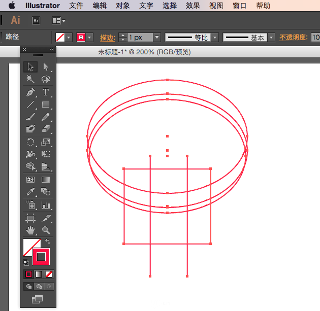 1、在AI中,使用方块、椭圆、直线工具绘制以上图形,居中对齐,用选择工具全选图形。