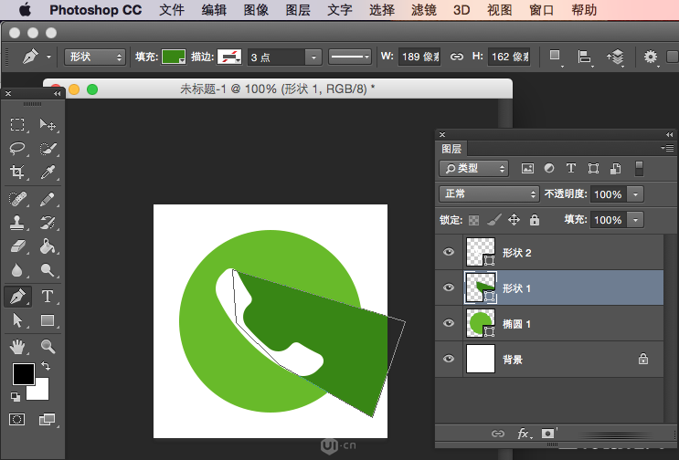 5、复制粘贴,形状路径到PS里,再创建阴影区域的形状图层。