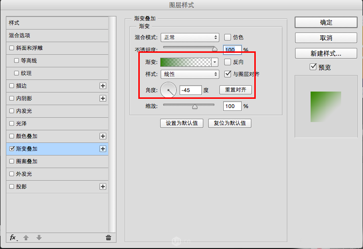6、设置渐变叠加角度如上。