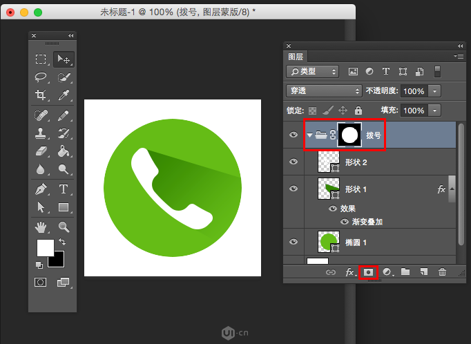 10、载入选区后,选中文件夹图层,点击图层面板底部的蒙版,添加蒙版。完成!