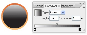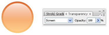 屏幕混合模式是我最喜欢的,因为它让我毫不费力地创建反射。 我将向您展示一个受欢迎的屏幕上创建一个按钮反射使用技术。 先画一个圆,应用梯度的光暗橙色