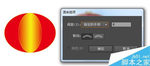 3、设置混合工具选项,指定步数为4,确定之后选择两个图形然后点对象-混合-建立,快捷键Ctrl+alt+b