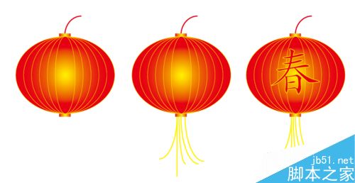 5、用弧形工具画一条曲线,放椭圆上方,然后再多画几条放入椭圆下方,摆好位置,用文字工具键放春字,这样一个灯笼就做好了。