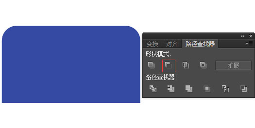 第二步:使用圆角矩形工具画一个圆角矩形,填充颜色为:#354aa3,使用矩形工具画一个矩形,填充任意颜色,选择矩形和圆角矩形,打开路径查找器,选择"减去顶层",如下图所示: