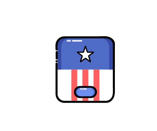 第五步:使用圆角矩形画两个圆角矩形,分别填充黑色,使用直线工具画一条直线,修改端点为圆形,然后使用圆角矩形画一个圆角矩形,填充描边为黑色,填充颜色为:#5070ca,复制一个圆角矩形,去掉描边颜色,填充颜色为:#2e3d87;使用矩形工具画一个任意颜色的矩形,选中圆角矩形副本和矩形,打开路径查找器,选择"减去顶层",使用直线段工具画一条直线,然后复制出直线副本,旋转副本,使用椭圆工具的同时按下shift键,画一个正圆,填颜色为白色,描边颜色为黑色,然后再画一个小的黑色圆形,选择所有形状,编组,如下图所示: