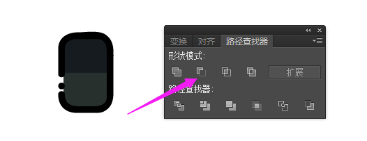 第二步:使用圆角矩形工具画一个圆角矩形,填充描边颜色为黑色,使用剪刀工具(C)剪碎圆角矩形,再将端点设置成5个像素的圆形,使用圆角矩形工具画一个圆角矩形,填充颜色为:#27302d,复制圆角矩形,改变填充颜色为:#151b1f,使用矩形工具画一个任意颜色的矩形,选中圆角矩形副本和矩形,打开路径查找器,选择减去顶层,如下图所示: