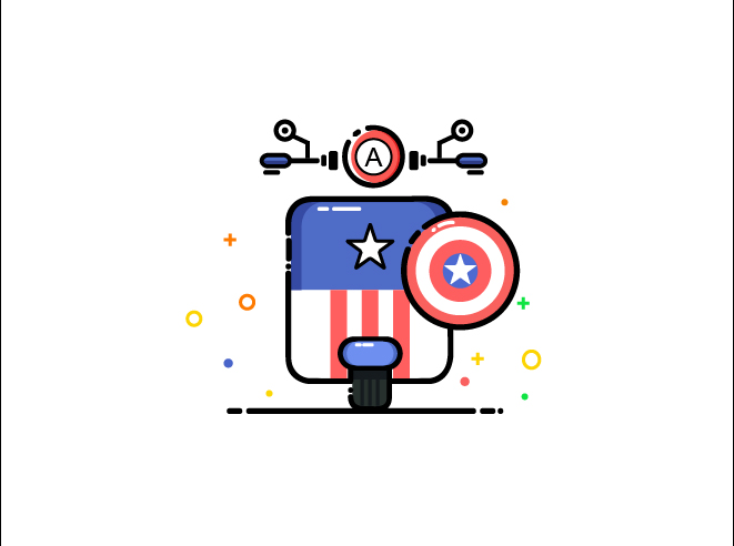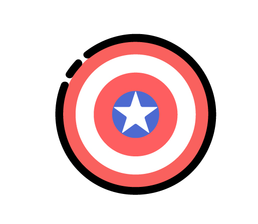 第四步:使用弧形工具画一条弧形,填充描边为白色,将端点设置成3个像素的圆形,使用剪刀工具(C)剪碎弧形,然后将整个盾牌摆放到相应的位置如图所示: