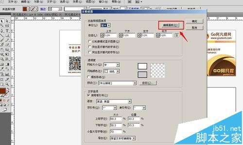 2、打开文档设置面板后,选择“出血和视图选项”中的“编辑画板”按钮。