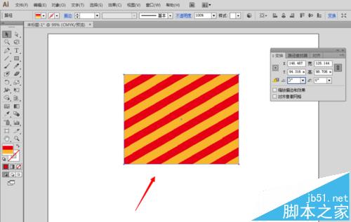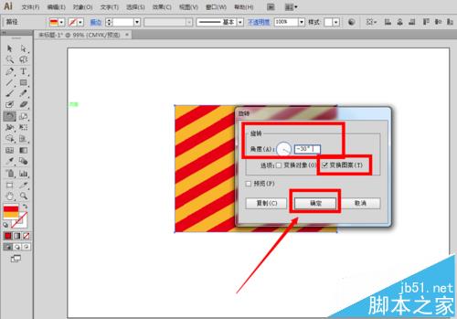 3、确定以后,我们可以看到画布里的图形发生了变化,里面的条纹图案旋转了30°