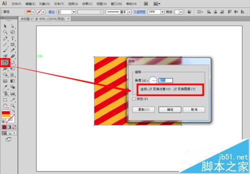 4、想要旋转条纹图案,我们还可以双击左边工具栏里的旋转工具,在弹出来的设置面板里设置数值