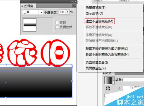 4、选择矩形和下面的文字 在透明度选项框里选择新建不透明蒙版
