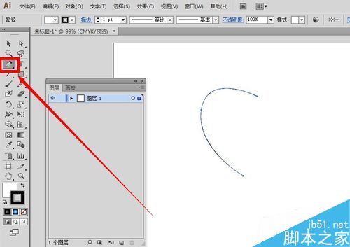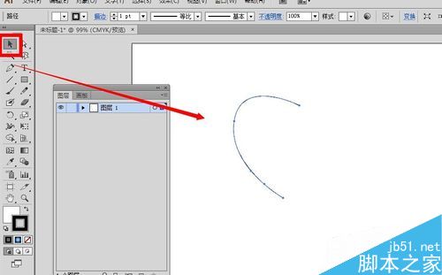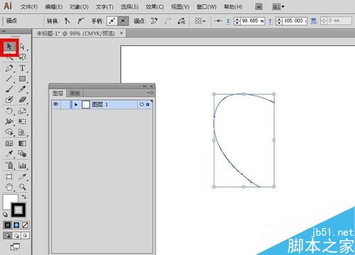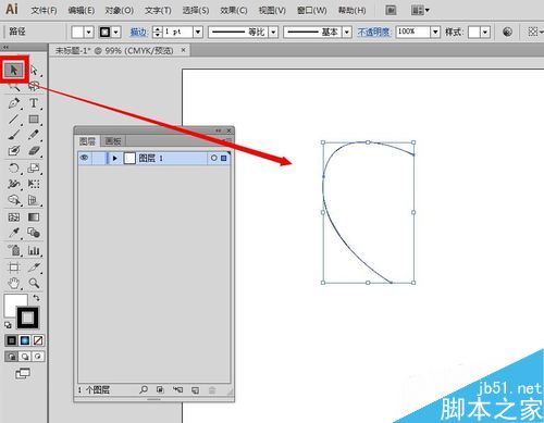 1、为了方便讲解,我们先使用钢笔工具,任意绘制一个半心形的图形
