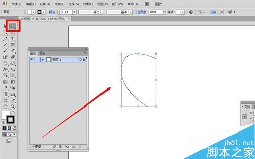 2、当我们使用黑色箭头“选择工具”,然后用鼠标单击图形,会得到整个图形被选中的状态