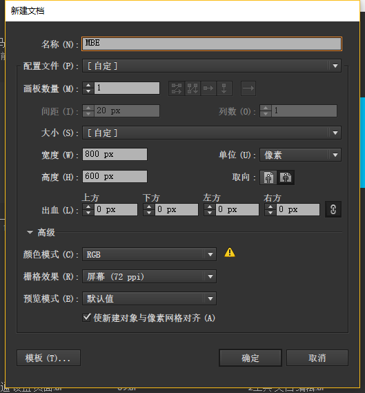 点击文件 > 新建,将窗口中的数值设置如图: