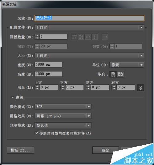 3、在画板上画一个正方形,这里我的大小是300*300Px,记住你所画图形的长宽,是为了之后设置它的厚度