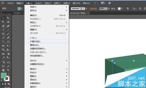 6、这时的正方体,其实还是个正方形,不可以调整每一个角,所以选中它,点击“对象”—“扩展外观”这时正方形才真正的变成了正方体