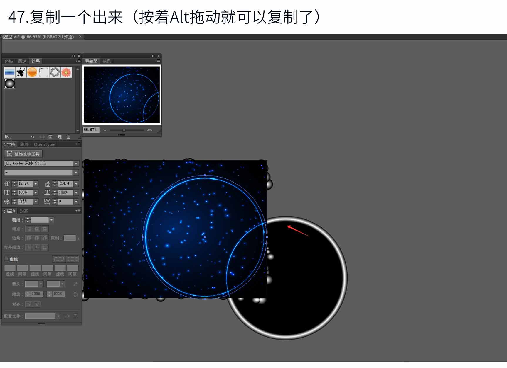 说到制作星空,很多人第一想到的是使用PS的笔刷来制作,其实AI来制作星光效果也很方便,同时最大的优势就是使用AI制作的话,还可以制作成矢量的,以后的运用会更加的方便,推荐过来和脚本之家的朋友们一起分享,一起学习了,我们先来看看最终的效果图吧:
