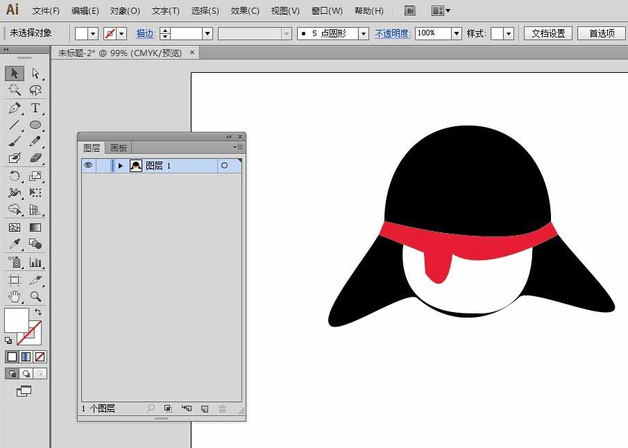 6、最后,按住ctrl键,在图形的空白处单击一下即可完成QQ企鹅图标的嘴巴制作了