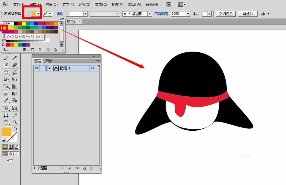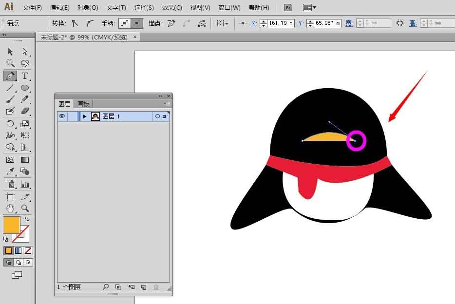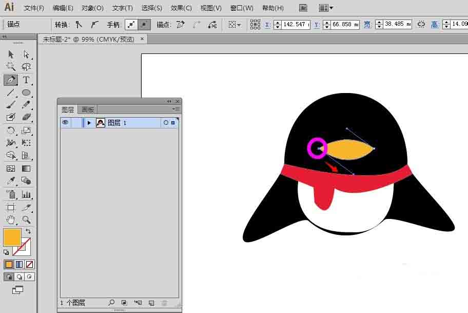 2、接着白色肚皮继续画,先把颜色填充为橙色,描边颜色设置保留不动。