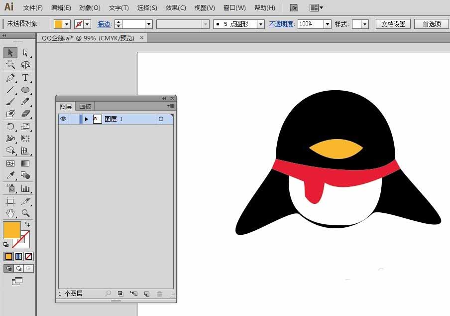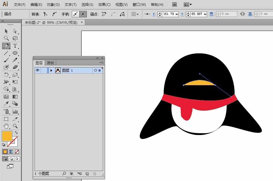 前面我们绘制QQ企鹅图标,这节继续绘制,主要画QQ企鹅图标的嘴巴。让我们来看看怎么画吧。