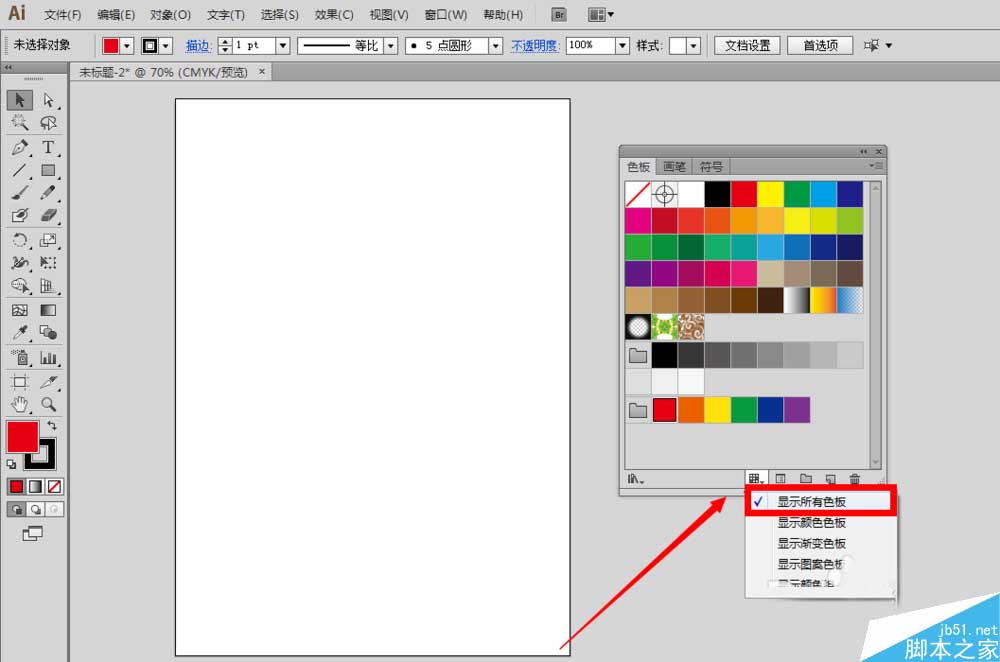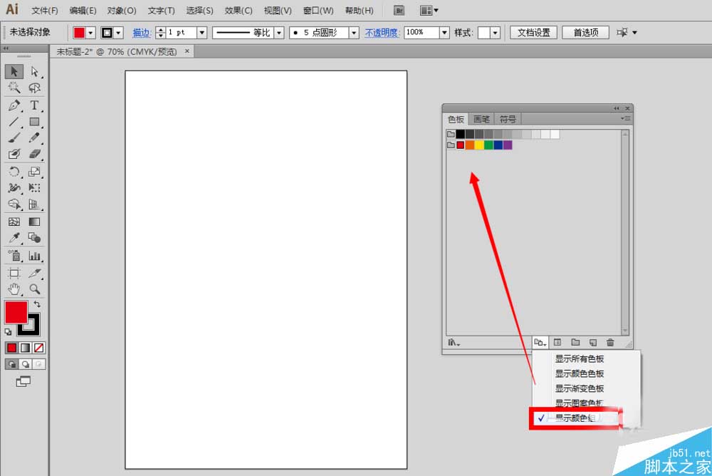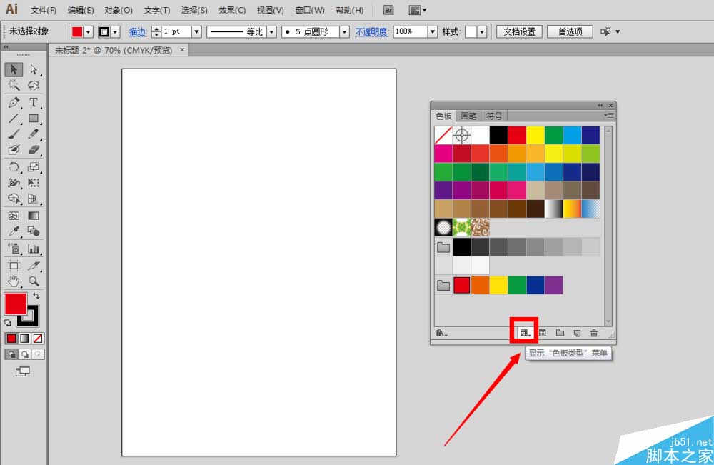 1、在色板底下有个显示“色板类型”菜单按钮,找到它