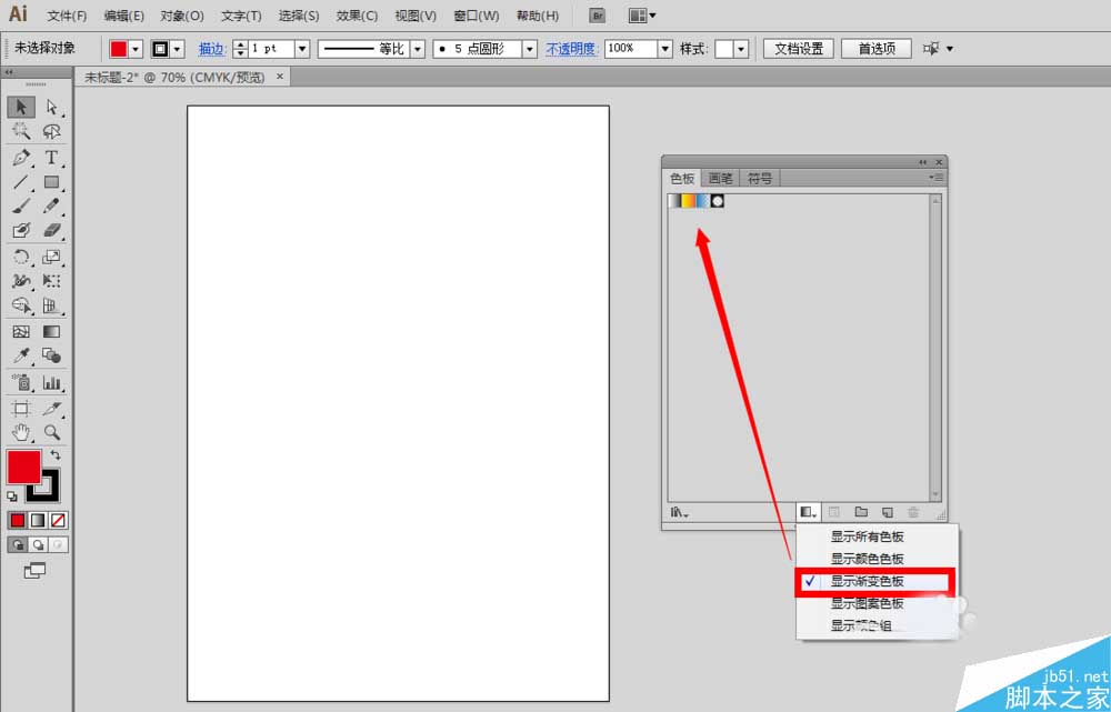 4、如果我们仅需要渐变色板,那么就在下拉面板里面选择“显示渐变色板”即可