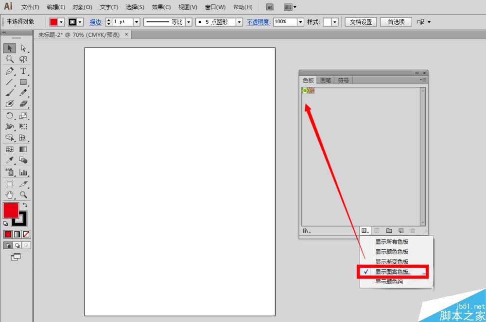 5、如果我们仅需要图案色板,那么就在下拉面板里面选择“显示图案色板”即可