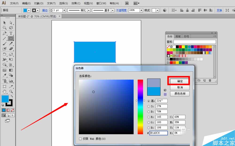 3、在弹出来的颜色选择面板里面选择一种基本色板里面没有的颜色,点击确定按钮