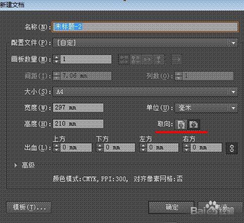 对画布的横向纵向设置有两种方法,一是新建文件时设置。