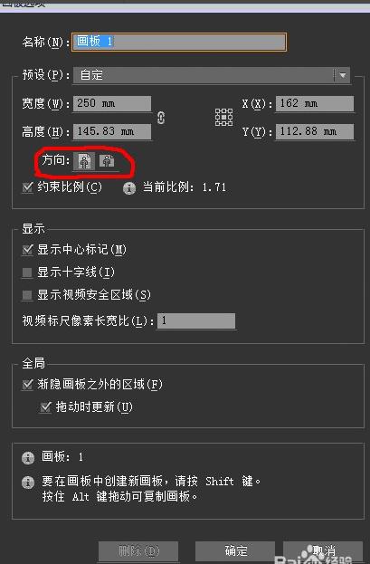 画板选项中的方向选择按钮就可以控制画面的方向。