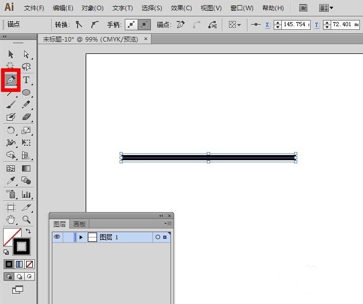 2、使用钢笔工具,在画布上绘制一条黑色直线