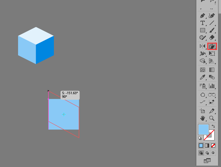 第一步:画一个平行四边形,在正方形的基础上使用倾斜工具,进行制作;