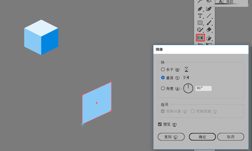 第三步:组合形状并找到水平翻转点,再次执行复制翻转操作;