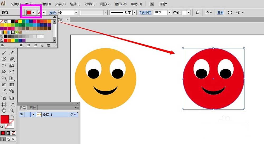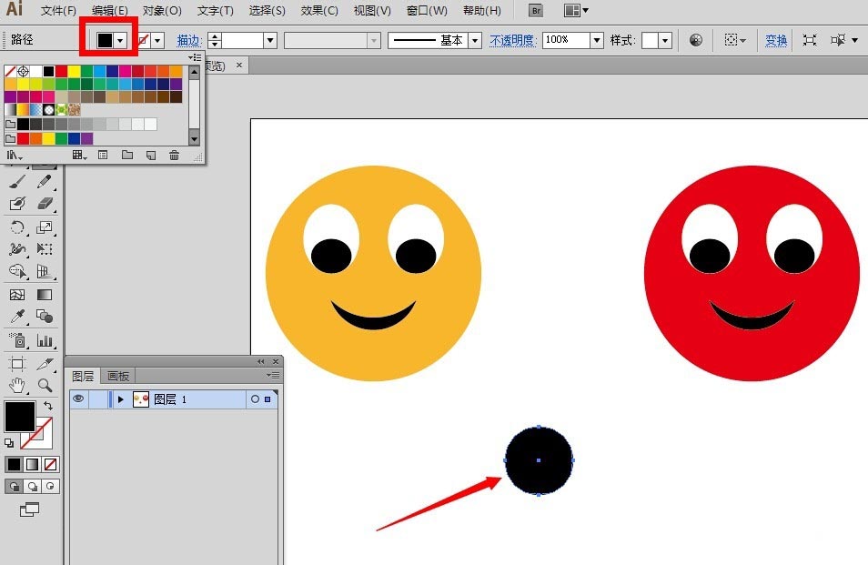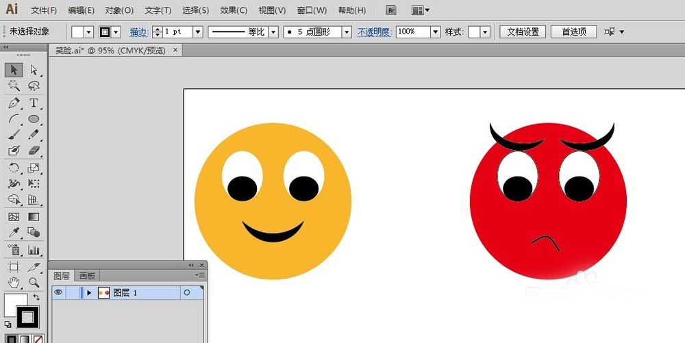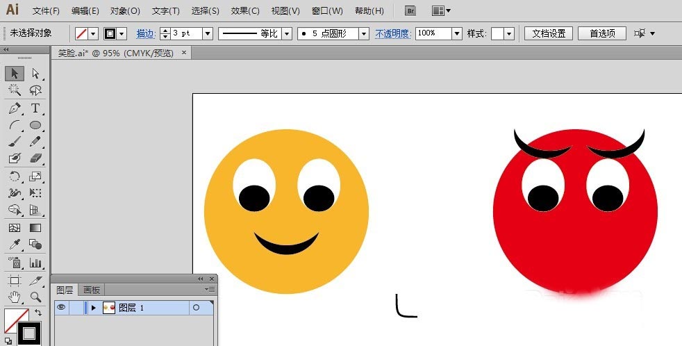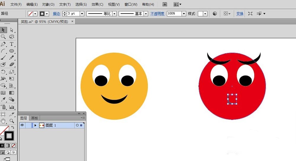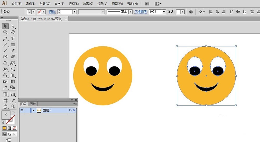 1、在绘制了QQ笑脸的基础上,选中QQ笑脸,按住键盘上的alt键,复制出另一个QQ笑脸
