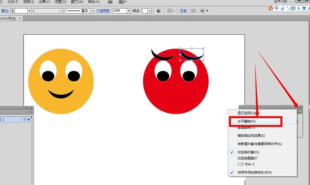 9、通过水平翻转,把另一个眉毛翻转过来,与第一个眉毛对称。这个时候,可以适当地调整眉毛的大小,弯度等,如果第一次没有画好,可以多画几次再做调整