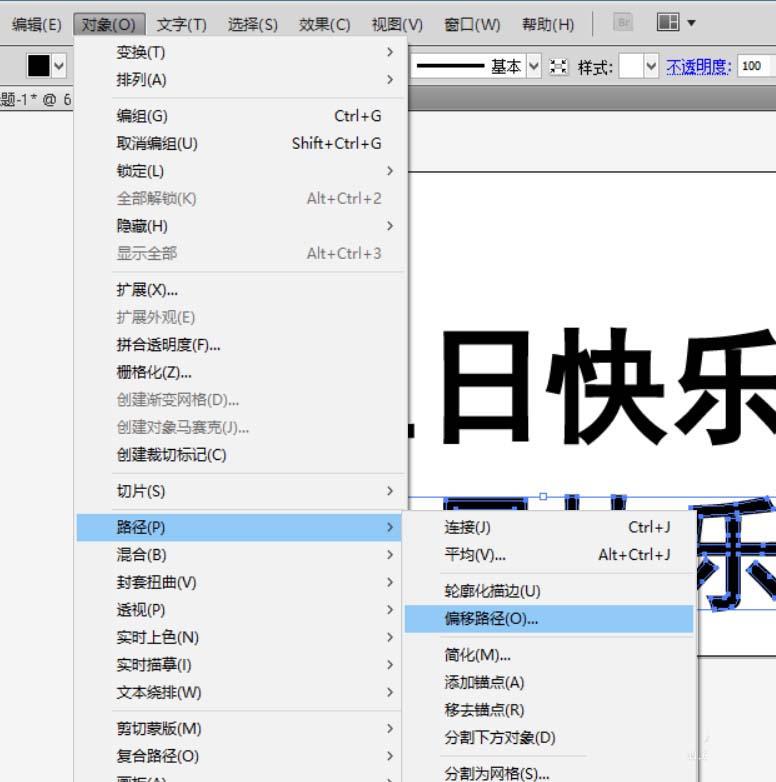 2、按住alt键拖动文字将文字复制一层,选择其中一个,创建轮廓,然后对象-路径-偏移路径,设置好参数。