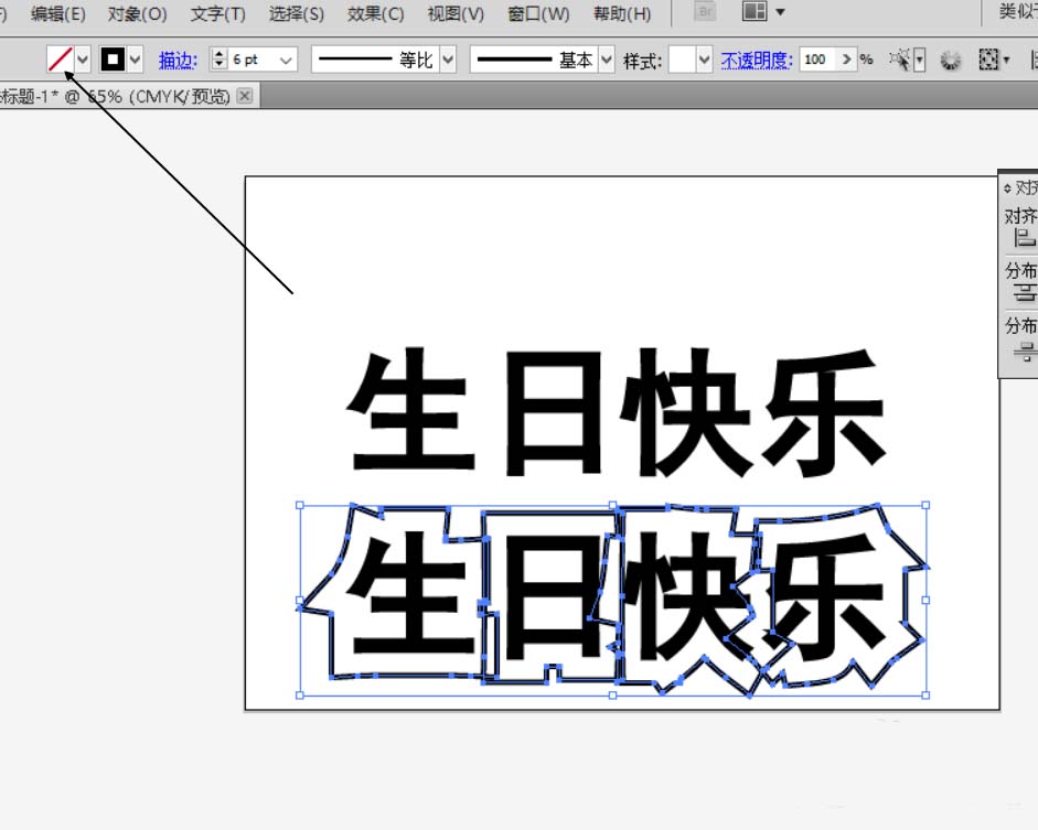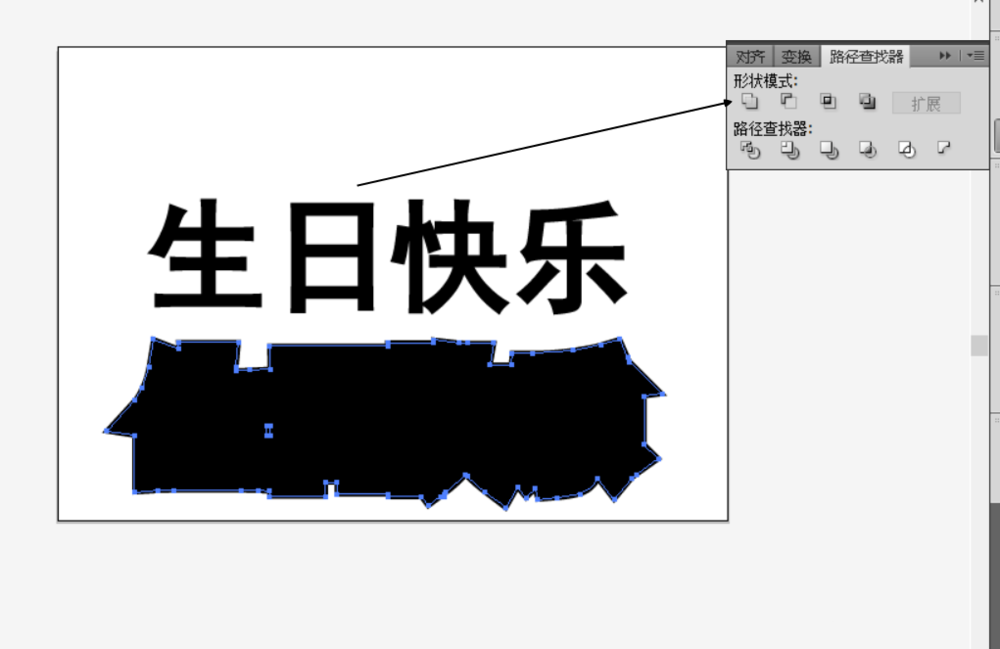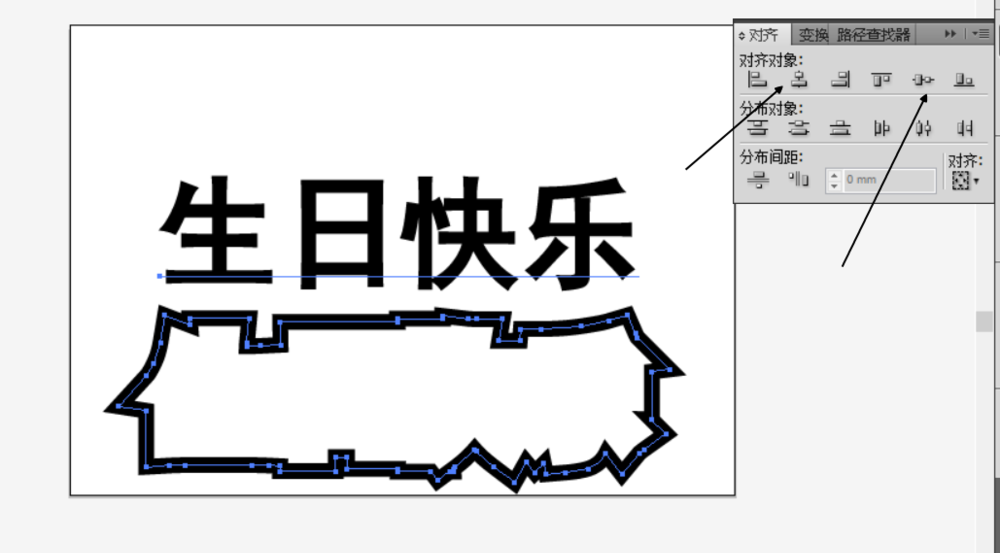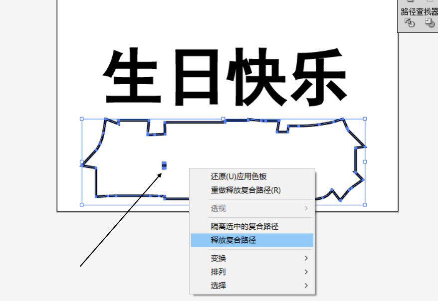4、释放复合路径,将中间的点删除,将描边扩大,选择文字和文字的扩展。居中,垂直对齐。