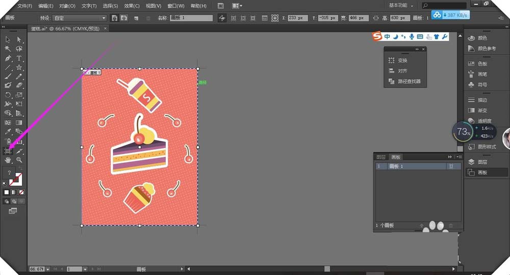 7、选画板工具下进行点击图像可形成和图像大小的画板