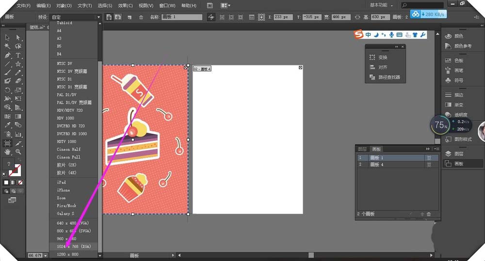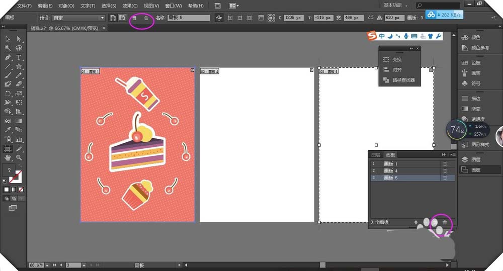 2、点击左边可新建画板点击右边可删除画板。