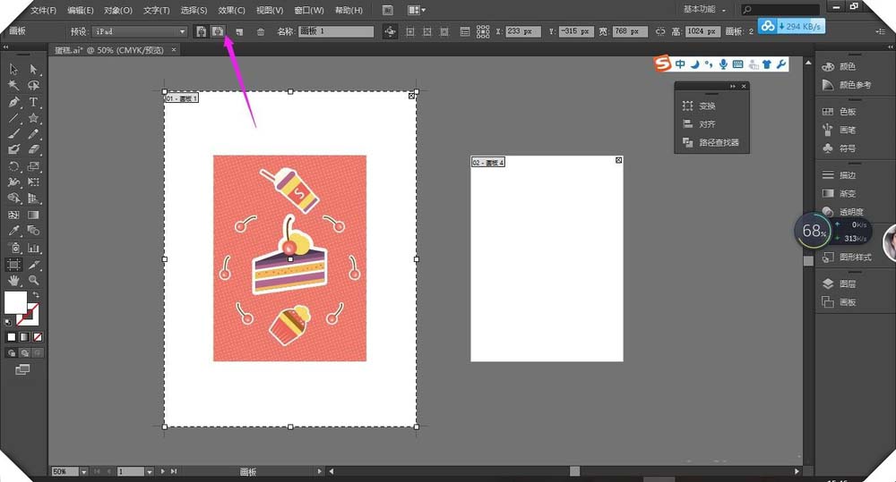 1、选择画板工具。