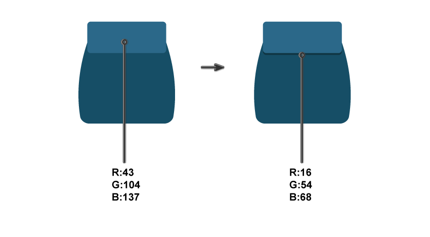 第八步:选中扣,复制出副本,然后选中第一步中创建的形状,创建出副本(ctrl+c,ctrl+f);填充颜色为:#1a5b72,调整到如下图所示的大小: