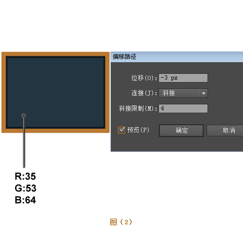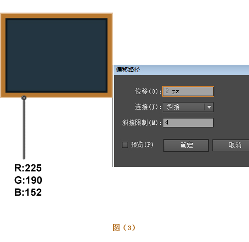 选中棕色的矩形,单击对象-路径-偏移路径输入如下参数(图3)改变填充颜色;
