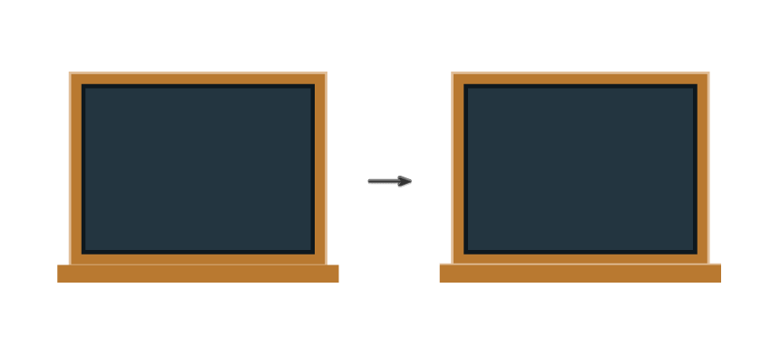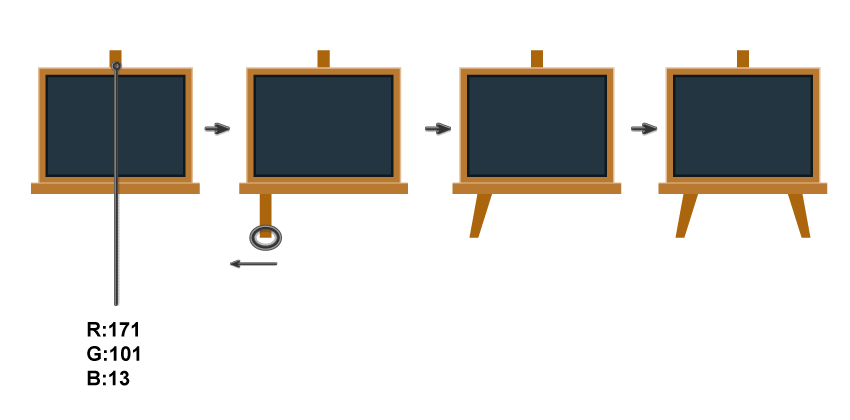 第三步:使用矩形工具(M)画一个深棕色的矩形放在黑板的顶部中心,,在使用矩形工具添加相同颜色的矩形在黑板的左下角,然后使用直接选择工具调整锚点,选中左边的腿,右键单击>变换>反映,选择垂直、角度90度,并按复制,得到右腿;如下图所示: