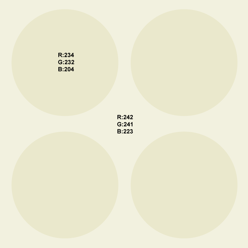 第一步:使用矩形工具(M)画一个850 x 850像素的正方形,填充颜色如下图,使用椭圆工具(L)画一个364*364像素的正圆,复制出三个,如下图所示: