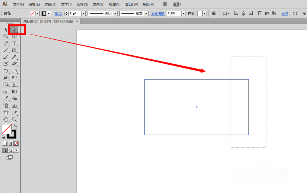 2、如果我们使用选择工具,选中图形,在变换面板里面设置宽高数值之类的,针对的是整个图形的,所以我们需要选择白色箭头”直接选择工具“,比如,同时框住右边的两个节点