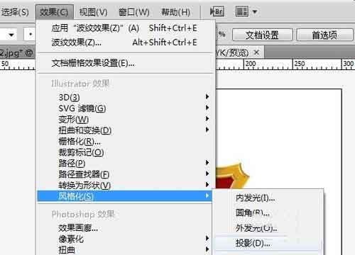 2、我们先是要打开效果这一个菜单栏,之后在风格化里面我们在选择投影这一个选项