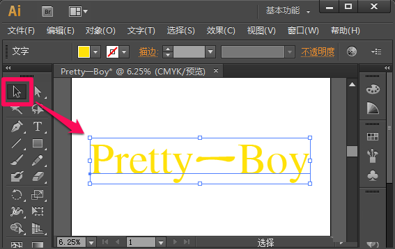 2、在工具栏中选中选择工具,然后点击选中文字。