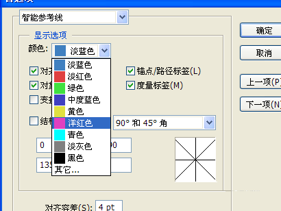 6、我们切换到智能参考线这里之后,我们给他更换一个颜色就好了,更改之后,我们点击上边的确定完成我的设置