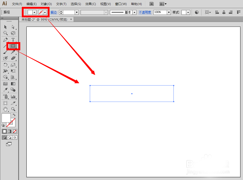 1、选择矩形工具,设置为白色填充,无描边,在空白的画板上画出一个长长的矩形