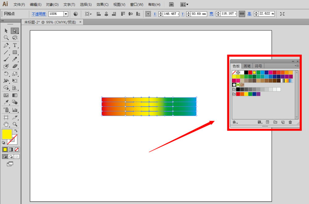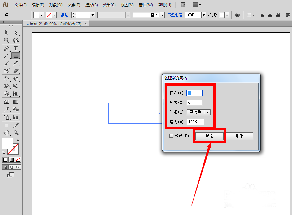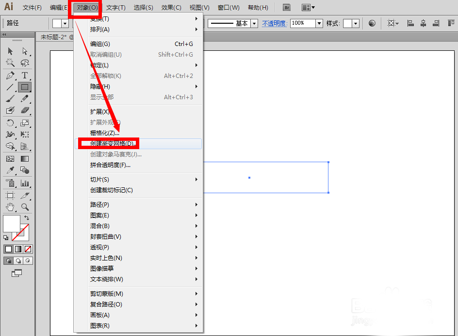 2、选中矩形,为矩形创建网格,点击菜单栏里的对象——创建渐变网格
